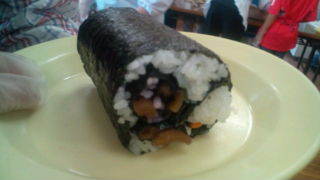 大山千枚田の棚田倶楽部にいます。後半のグループの祭り寿司作りが進んでいます。11:50