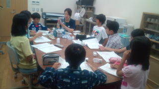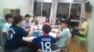 興津の学園にいます。班長会議をしています。今日の反省と、明日の予定の確認が話題です。20:35