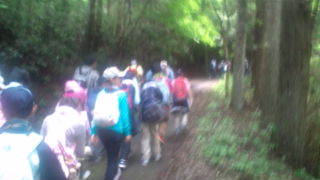 ハイキング中です。だんだん山深くなってきました。ところどころできれいな地層も観察しています。10:05