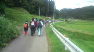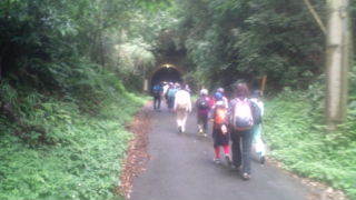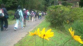 ハイキング中です。子どもたちは全員参加し元気です。9:45