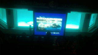 鴨川シーワールドにいます。ナイトアドベンチャーです。飼育係の説明を聞いています。20:50