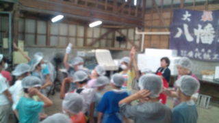 大原漁港に着きました。最初1組は漁港の話を聞き、2組は魚の開きを作る体験をします。9:05