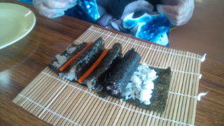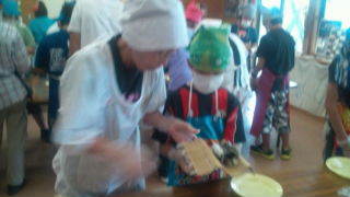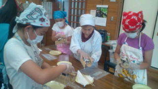大山千枚田の棚田倶楽部にいます。後半のグループの祭り寿司作りが進んでいます。11:40