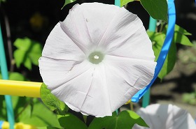 1年生が大切に育てている朝顔が、たくさんの花を咲かせています。