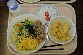ゴマだれ冷やし中華 じゃがバター 果物(さくらんぼ)