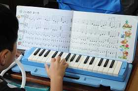 「こいぬのマーチ」を鍵盤ハーモニカで練習しています。