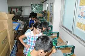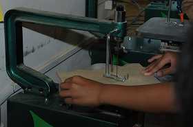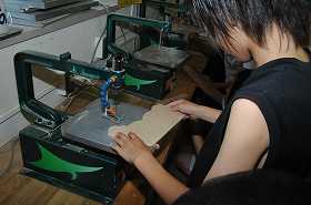 「フリードライブ」をテーマに、1枚の板から立体的なオブジェを作ります。作る途中で電動ノコギリをうまく活用します。