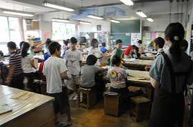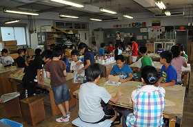 「フリードライブ」をテーマに、1枚の板から立体的なオブジェを作ります。作る途中で電動ノコギリをうまく活用します。