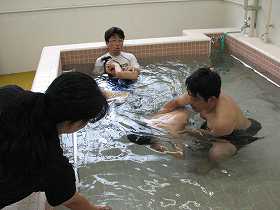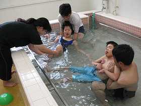 わかたけプールの中で水慣れの運動をしています。