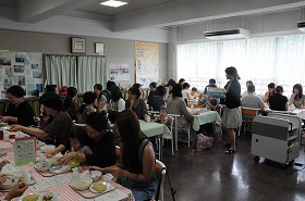 後半は実際に給食を食べていただいています。