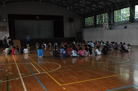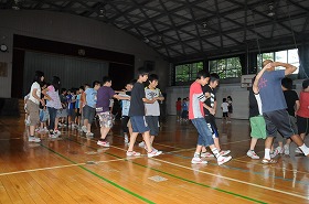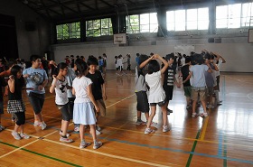 八ヶ岳自然宿泊体験教室の準備としてフォークダンスの練習をしています。