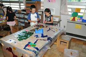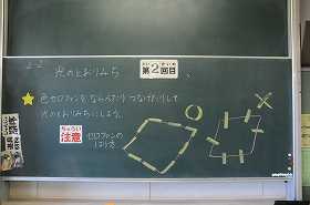 「光のとおりみち」をテーマに、色セロファンを並べたり、つなげたりして光のとおりみちを作っています。