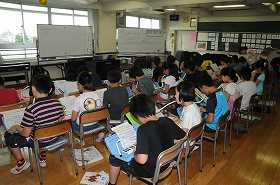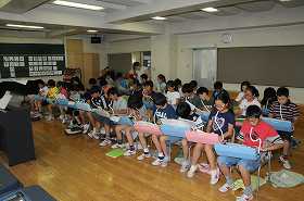 楽譜を見て、鍵盤ハーモニカで個人練習をしています。