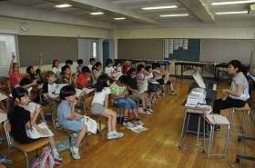 「まきばの朝」の詩を読んで、イメージを出し合っています。