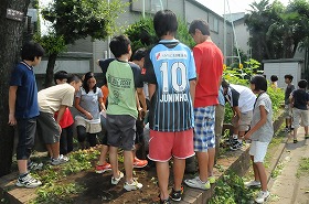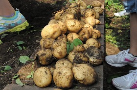 子どもたちが大切に育ててきたジャガイモを収穫しています。