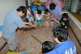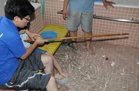 わかたけプールで釣りゲームをしながら数の学習をしています。