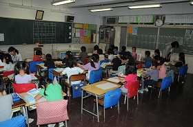 枠を決め、ひらがなを集めて言葉を作る準備をしています。