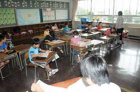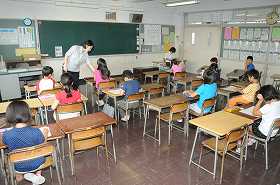 自分の課題に取り組んでいます。目黒中央中学校の生徒が支援に来てくれています。