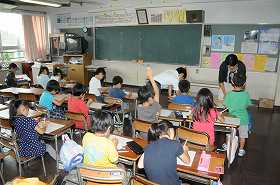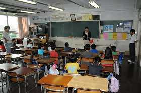 自分の課題に取り組んでいます。目黒中央中学校の生徒がジュニアティーチャーとして支援に来てくれています。