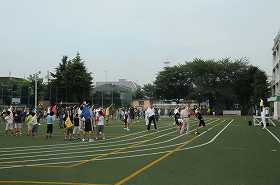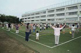 NHKテレビ体操の指導者をお迎えしてのラジオ体操が行われました。250人を超える方が参加してくださいました。