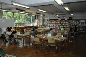 たくさんの子どもたちが図書室で本を読んでいます。