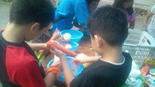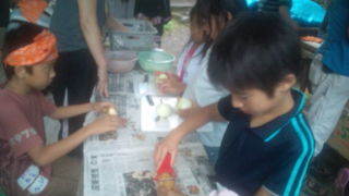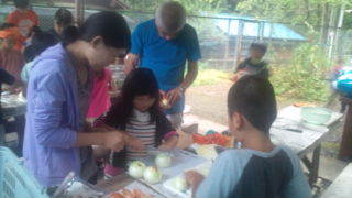 清東園キャンプ場にいます。子どもたちによる夕食のカレー作りが進んでいます。16:35