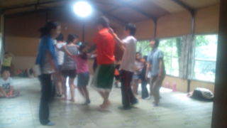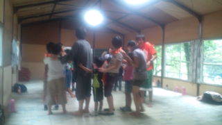 清東園キャンプ場にいます。お風呂から上がった子どもたちから大きなコテージに集まりゲームをしています。15:15