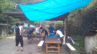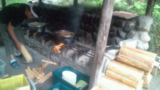 清東園キャンプ場にいます。大人が準備を進めています。13:10