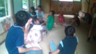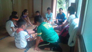 清東園キャンプ場にいます。生活班ごとに集まり、自己紹介などをしています。13:00