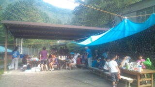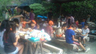 清東園キャンプ場にいます。朝食作りが始まりました。作るのはカンガルートーストです。7:40