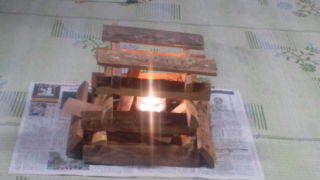 清東園キャンプ場にいます。雨が降っているので、室内キャンプファイヤーをしています。19:30