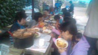 清東園キャンプ場にいます。みんなで協力して作ったカレーはとてもおいしいです。18:15