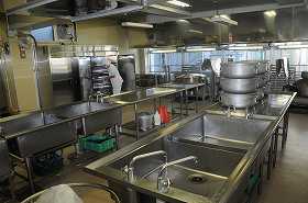 工事や点検が終わった給食室で、来週の月曜日から始まる給食の準備を行っています。
