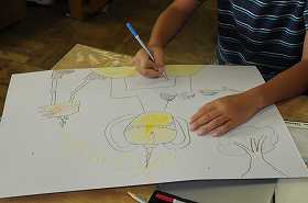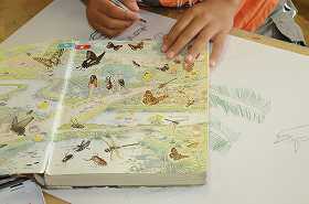 「ふしぎなせかい」をテーマに、不思議な色鉛筆で、不思議な世界を描いています。