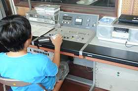 放送委員会の当番の子どもが、お昼の放送を流しています。