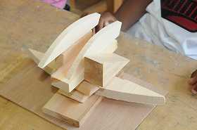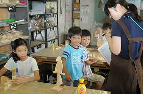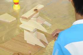「つみ木のカタチ」をテーマに、木を積み上げ、自分だけのいい形を作っています。