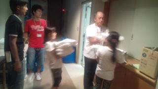 学園にいます。係の子どもがシーツを部屋に運んでいます。17:00