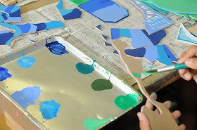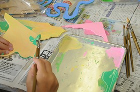 「フリードライブ」を課題に、木の組み合わせに気をつけながら色を塗っています。
