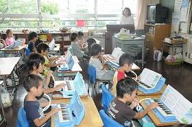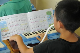 鍵盤ハーモニカの練習をしています。