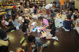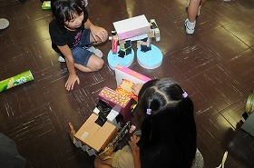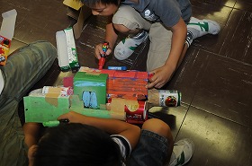 箱を組み合わせ、色を塗って、いろいろな形を作っています。