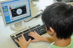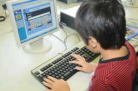 キーボードを使ってタイピングの練習をしています。