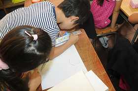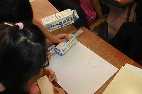 算数で、箱の形を紙に写しとります。