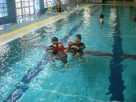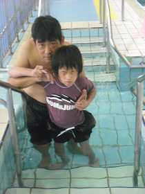 五本木プールで水治訓練をしています。