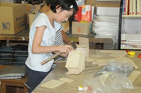 「油面住宅」をテーマに、オリジナルハウスを、よく考えて組み立てたり着色したりしています。