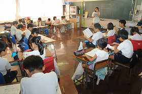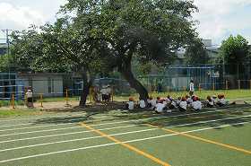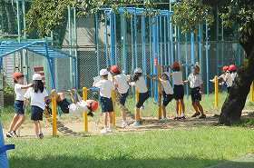 鉄棒の練習をしています。その前に、教室で鉄棒の回り方の確認をしました。