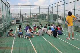 屋上で月の観察をしています。