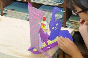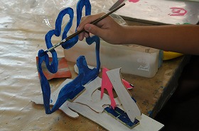 「フリードライブ」を課題に、色を塗った木を組み合わせています。