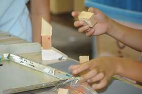 「トーテムポールの町」をテーマに、好きな材料を組み合わせながら、トーテムポールの楽しい町を作っています。