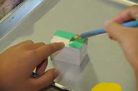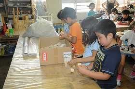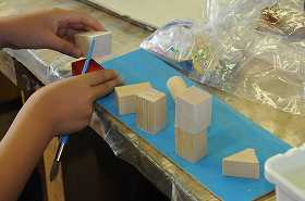 「トーテムポールの町」をテーマに、好きな材料を組み合わせながら、トーテムポールの楽しい町を作っています。