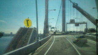 湾岸線を走っています。東京タワーの横を通り、レインボーブリッジを渡って海ほたるに向かいます。8:25